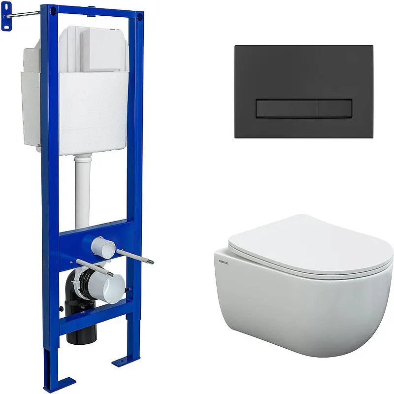 Комплект унитаза Berges Ventas с инсталляцией Atom Line 043306 с сиденьем Микролифт и Черной Soft touch клавишей смыва