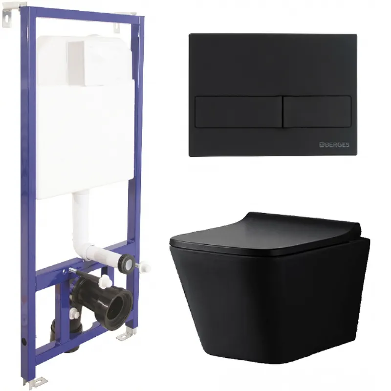 Комплект унитаза CeramaLux 5171MB с инсталляцией Berges Novum L5 040215 с сиденьем Микролифт и Черно