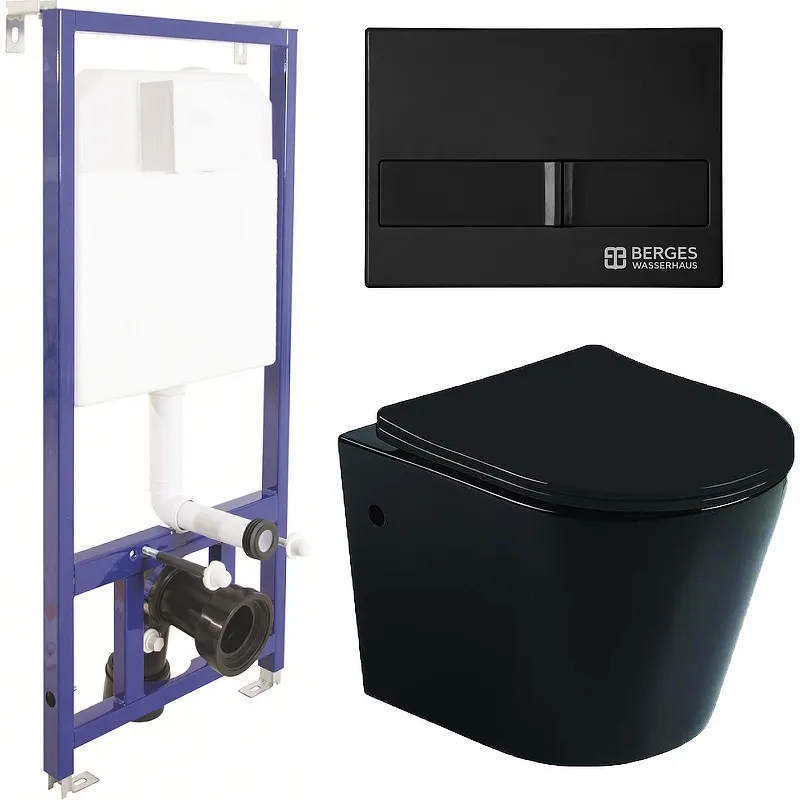 Комплект унитаза CeramaLux B2330В с инсталляцией Berges Novum L5 040215 с сиденьем Микролифт и Черно