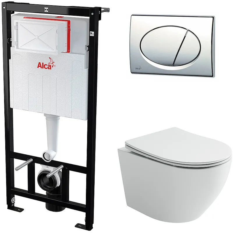 Комплект унитаза Ceramicanova Uno Rimless CN11001 с инсталляцией Alcaplast Sadromodul AM101/1120-3:1 RU M71-0001 с сиденьем Микролифт и клавишей смыва Хром.Характеристики:Унитаз: Цвет: белый. Материал: санфарфор. Габариты (ШхВхД): 360х360х490 мм. Безободковая конструкция Rimless (обеспечивающая безупречную чистоту и легкий уход). Особенность конфигурации безободковой чаши: защитный бортик от выплеска воды. Глубокий смыв. Направление выпуска: горизонтальное (в стену). Монтаж: подвесной. Ультратонкое сиденье из дюропласта с плавным опусканием крышки (Soft Close-микролифт), быстросъемное. Инсталляция: Для подвесных унитазов. Для монтажа к несущей стене или в гипсокартонную конструкцию. Для пола с толщиной стяжки 0 – 200 мм с возможностью регулировки. Для установки подвесного унитаза с интервалом крепления 180 мм или 230 мм. Конструкция рамы позволяет производить монтаж к профилю для гипсокартона, предназначенного для этих целей или к несущей стен