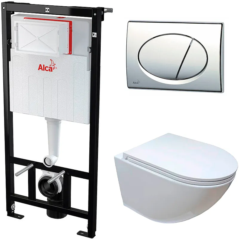 - Лёгкость установки: Инсталляция Alcaplast подходит для монтажа к несущей стене или гипсокартону, обеспечивая надежность и долговечность.