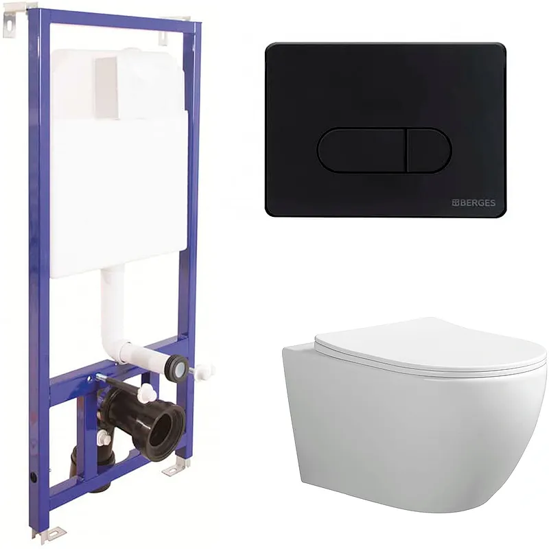 - Инсталляция со смывным бачком и черной матовой клавишей Berges Novum D5 040235.