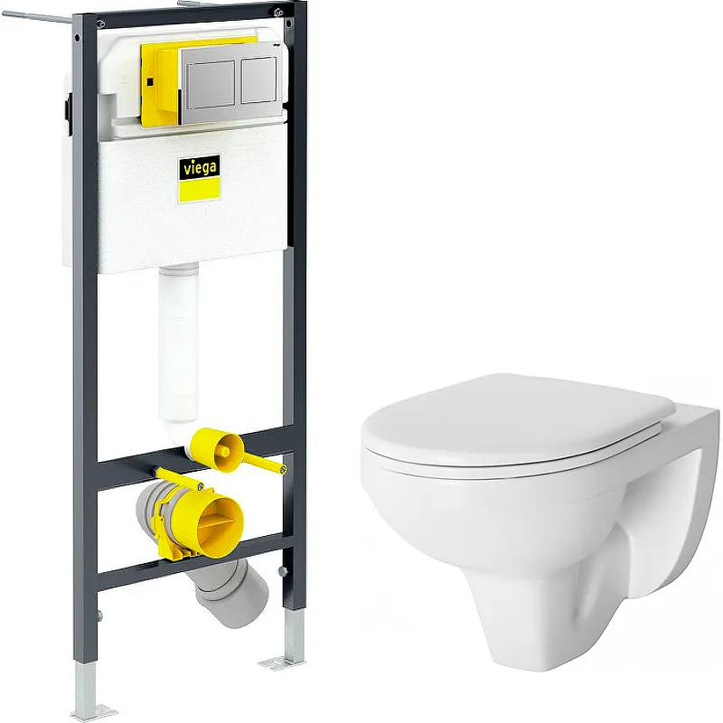 Комплект унитаза Damixa Jupiter DX77C1738SC с инсталляцией Viega Prevista Dry 8524.14 792596 с сиденьем Микролифт и клавишей смыва Хром