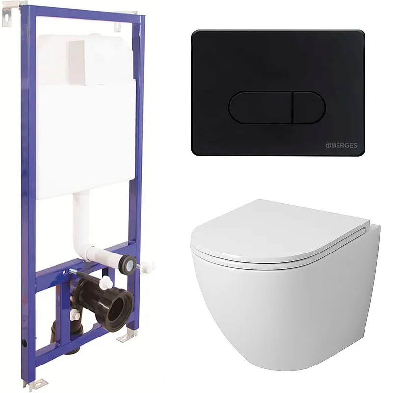 - Инсталляция со смывным бачком и черной матовой клавишей смыва Berges Novum D5 040235