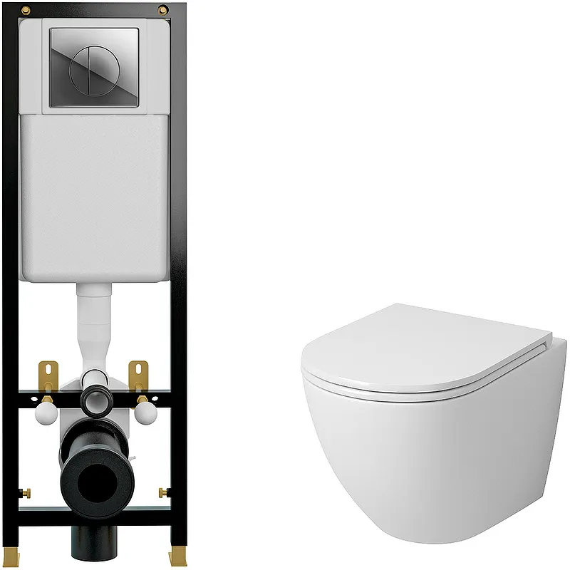 Комплект унитаза Grossman GR-4455S с инсталляцией Cersanit Black 35 S-IN-BLACK-Cg-w с сиденьем Микролифт и клавишей смыва Хром
