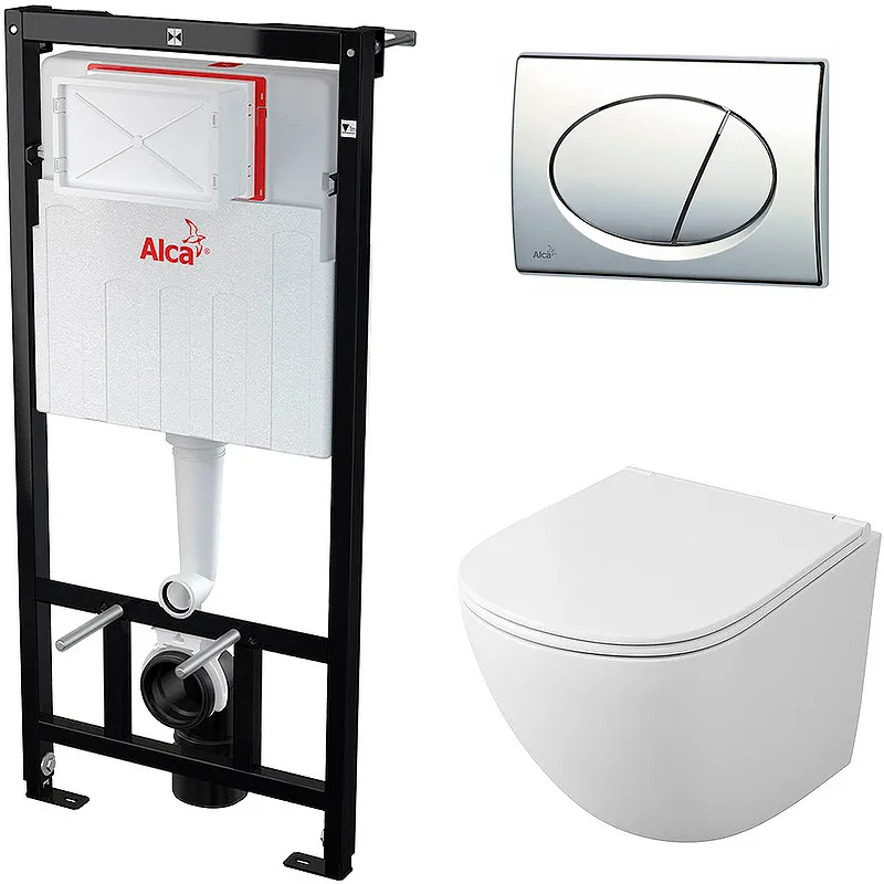 Комплект унитаза Owl 1975 Vind Cirkel-H TOWLT190302 с инсталляцией Alcaplast Sadromodul AM101/1120-3:1 RU M71-0001 с сиденьем Микролифт и клавишей смыва Хром.Глазурь полностью закрывающая поры в керамике позволяет сделать процесс очистки изделия проще, а также препятствует образованию налёта.Характеристики:Унитаз: Цвет: белый. Материал: фарфор. Размеры (ШхДхВ): 370х360х490 мм. Направление выпуска: горизонтальное (в стену). Безободковая конструкция. Система антивсплеск. Мощный вихревой слив (Технология Tornado). Антибактериальное покрытие препятствующее размножению микроорганизмов. Монтаж: подвесной. Сиденье из дюропласта с плавным опусканием крышки (Микролифт), быстросъемное. Инсталляция: Для подвесных унитазов. Для монтажа к несущей стене или в гипсокартонную конструкцию. Для пола с толщиной стяжки 0 – 200 мм с возможностью регулировки. Для установки подвесного унитаза с интервалом крепления 180 мм или 230 мм. Конструкция рамы позволяет произ