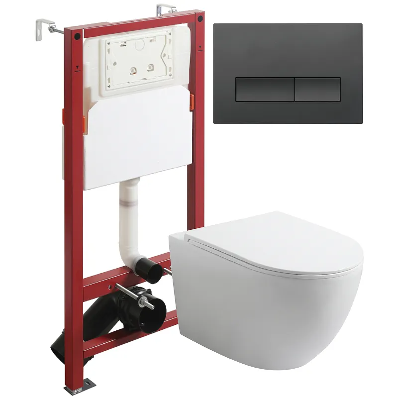 Комплект унитаза с инсталляцией Agger ATI07150+APB244 с сиденьем Микролифт и Черной матовой клавишей смыва