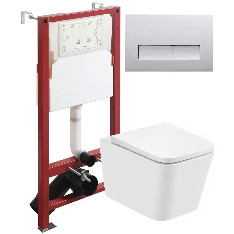 - Современный дизайн: Квадратная форма и хромированная клавиша смыва подчеркивают стиль интерьера.