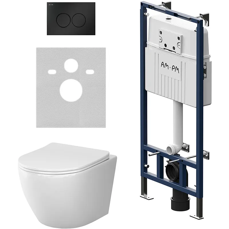 Купить комплект унитаза с инсталляцией AM.PM — это надежный выбор для вашей ванной комнаты, обеспечивающий стиль, комфорт и долговечность.