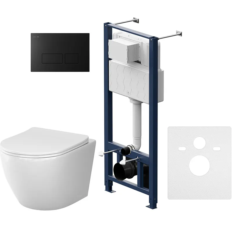- Современный дизайн: Черная матовая клавиша смыва и белый фарфоровый унитаз создают современный и стильный вид.