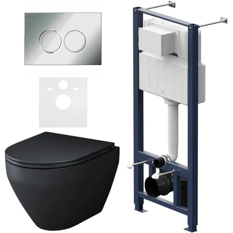 - Современный дизайн: Черный матовый цвет и овальная форма делают данный унитаз идеальным элементом интерьера.