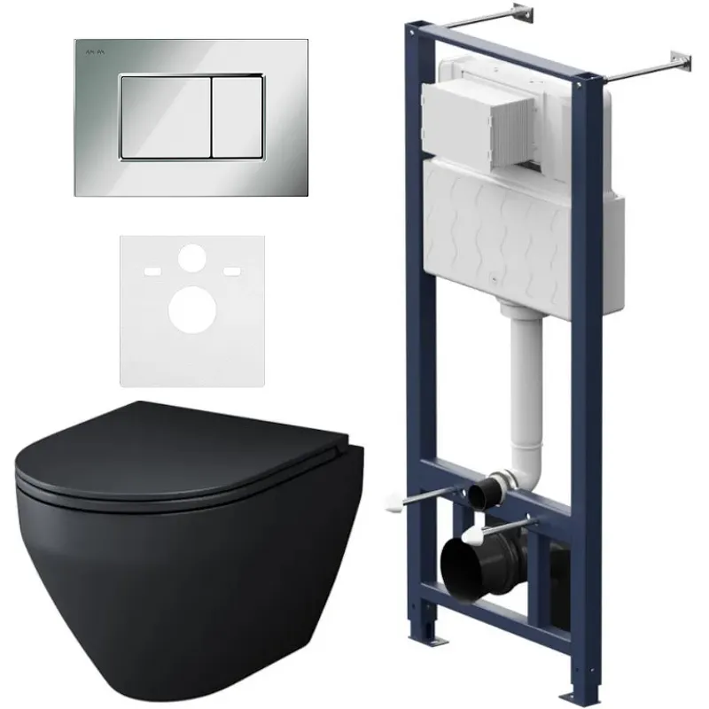 Комплект унитаза с инсталляцией AM.PM Spirit V2.0 FlashClean IS70251.701700MB — идеальное решение для современных ванных комнат. Этот черный матовый унитаз предназначен для подвесного монтажа и оснащен системой антивсплеск.