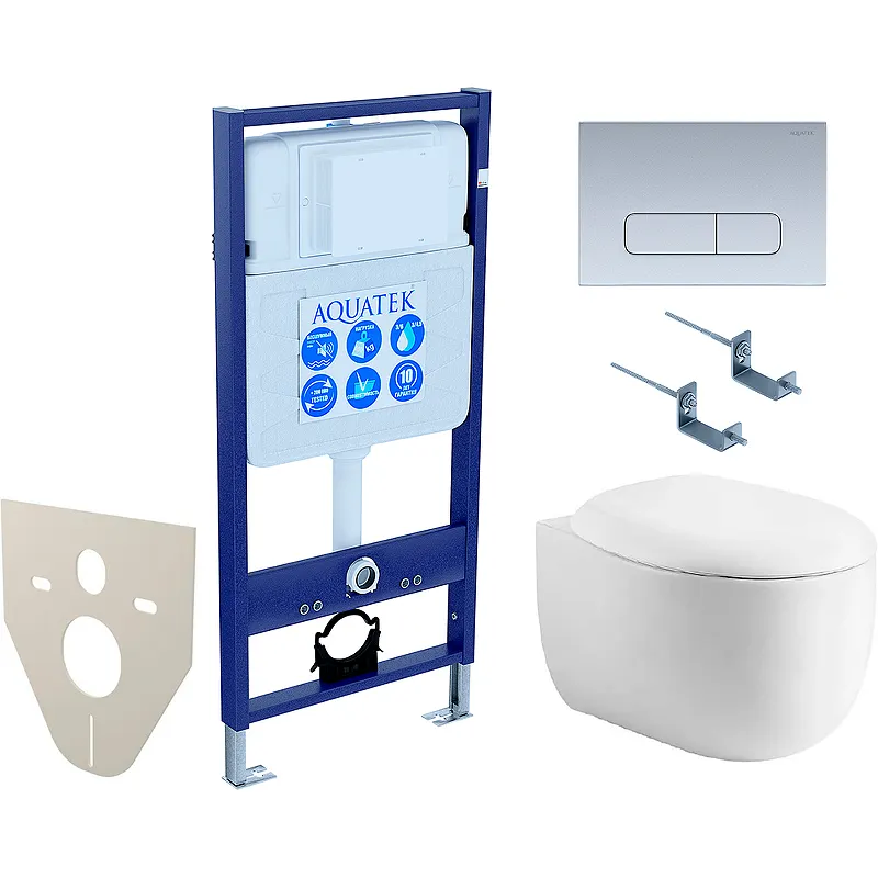 Комплект унитаза с инсталляцией Aquatek — это сочетание функциональности и эстетики. Купить комплект унитаза с инсталляцией Aquatek Альтаир — значит сделать выбор в пользу качества и современного дизайна.