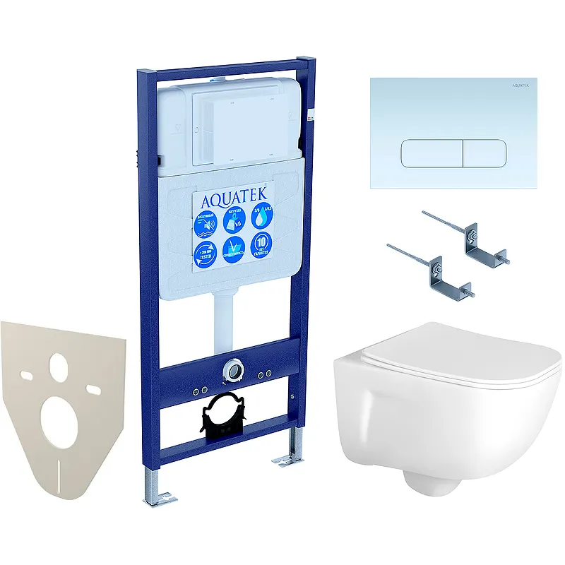 Купить комплект унитаза с инсталляцией бренда Aquatek — это обеспечить себе комфорт и долговечность.