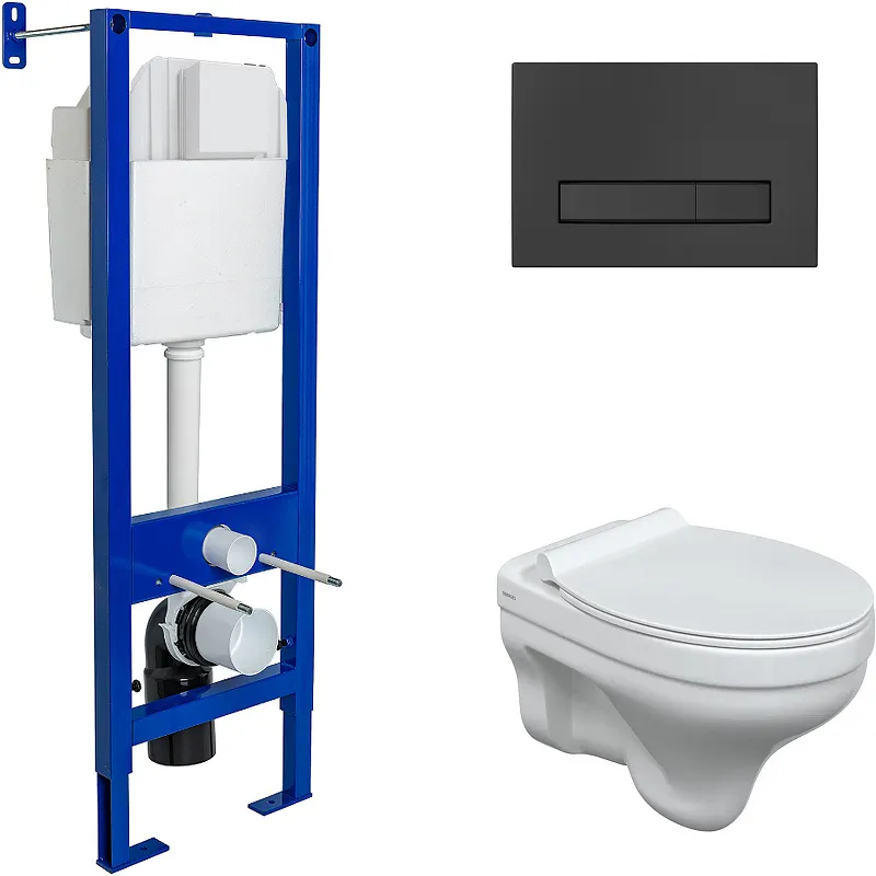 Комплект унитаза с инсталляцией Berges Atom 042442 с сиденьем Микролифт и Черной клавишей смыва