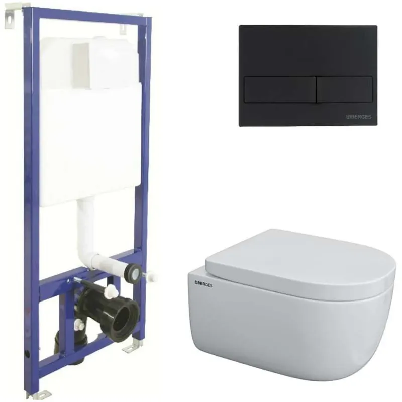 Комплект унитаза с инсталляцией Berges Ego Rimless 043232 с сиденьем Микролифт и Черной клавишей смыва