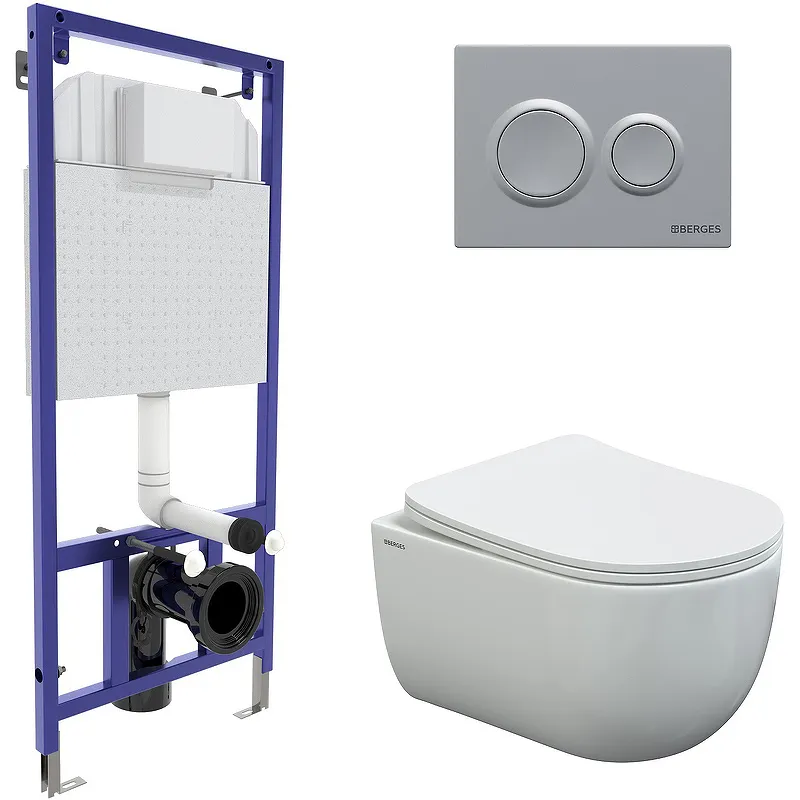 Купить комплект унитаза с инсталляцией Berges — это выбор в пользу качества и современного дизайна, который подойдет для любой ванной комнаты.