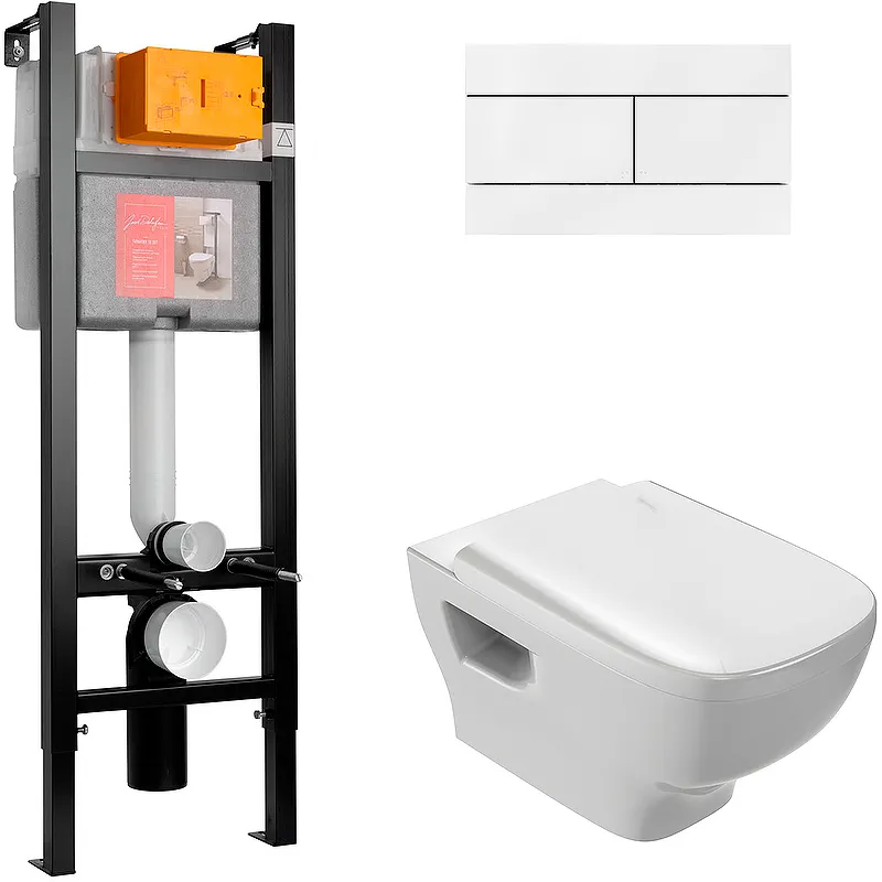 Комплект унитаза с инсталляцией Jacob Delafon Struktura E21771RU-00 с сиденьем Микролифт и Белой клавишей смыва