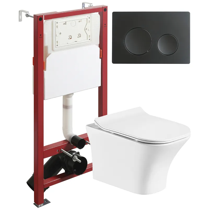 Комплект унитаза с инсталляцией Orange CI02-100W+APB144 — стильное и функциональное решение для вашего интерьера. Этот унитаз в ванную с сиденьем и черной матовой клавишей смыва идеально впишется в современный дизайн.