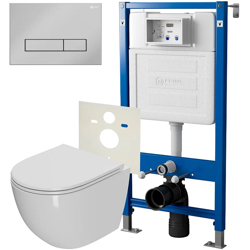 Комплект унитаза с инсталляцией Point Афина с сиденьем Микролифт и клавишей смыва Хром арт-PN48054C — фото 1, Комплекты унитаз + инсталляция