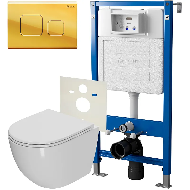Комплект унитаза с инсталляцией Point Афина PN48341G с сиденьем Микролифт и клавишей смыва Золото