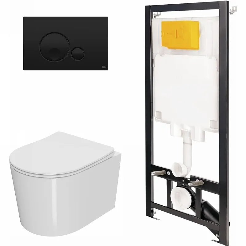 Комплект унитаза с инсталляцией Point Веста 886914GBO3+PN41701 с сиденьем Микролифт и Черной матовой клавишей смыва