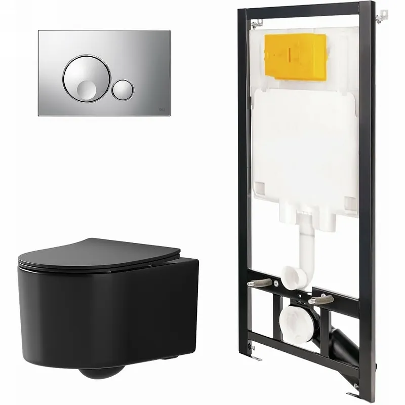 Комплект унитаза с инсталляцией Point Веста 886914GBOO+PN41701BM Черный матовый с сиденьем Микролифт и клавишей смыва Хром глянцевый