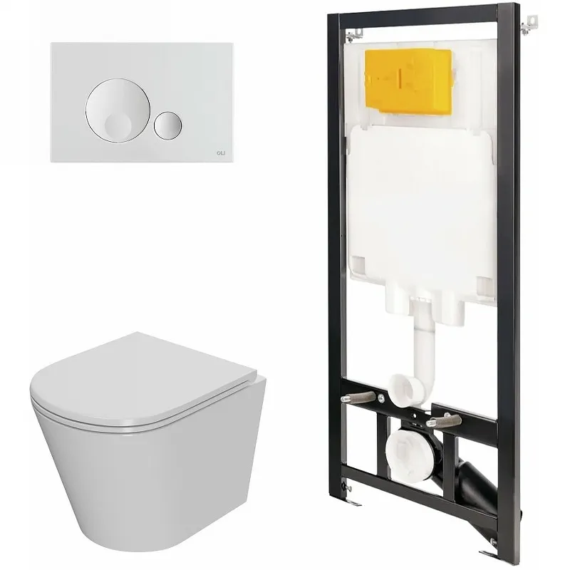 Комплект унитаза с инсталляцией Point Виктория 886914GBO1+PN41061 с сиденьем Микролифт и Белой клавишей смыва