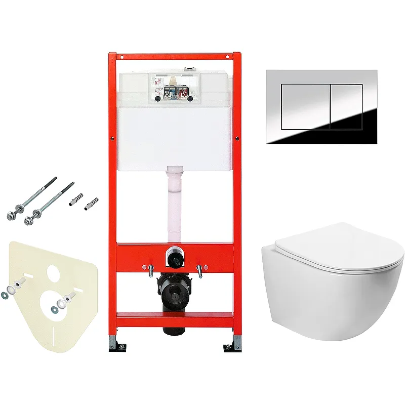 Комплект унитаза SantiLine SL-5005 с инсталляцией Tece Profil 9400412 с сиденьем Микролифт и клавишей смыва Хром глянцевый