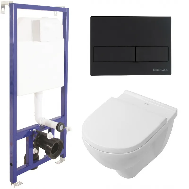 Комплект унитаза Villeroy&Boch O Novo 5660H101 с инсталляцией Berges Novum L5 040215 с сиденьем Микролифт и Черной матовой клавишей смыва