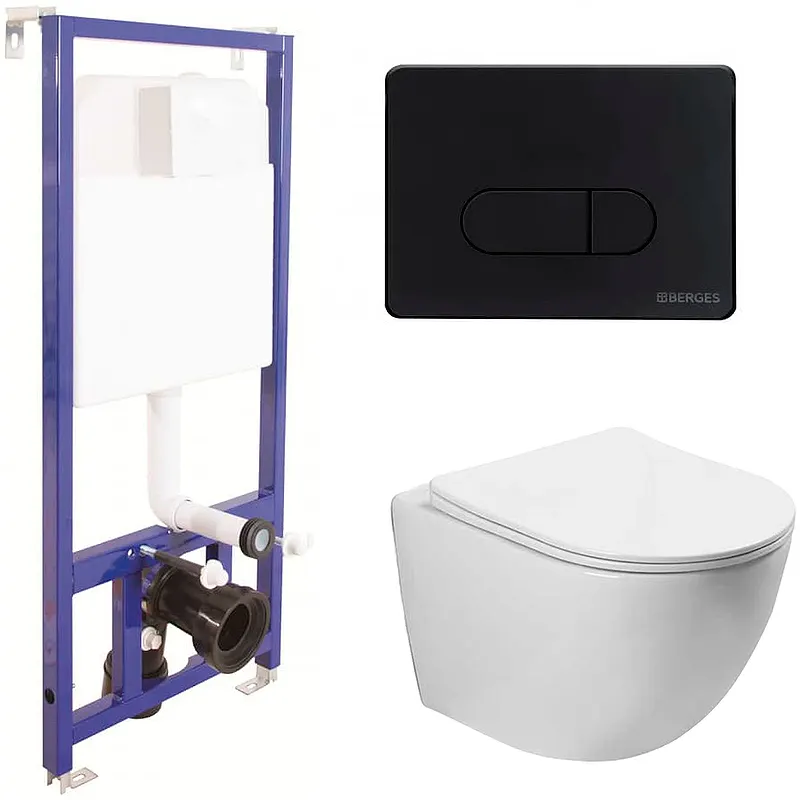 - Инсталляция со смывным бачком и черной матовой клавишей смыва Berges Novum D5 040235