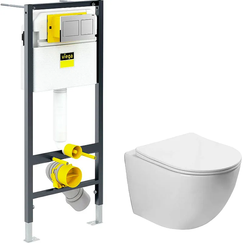 - Инсталляция Viega Prevista Dry: Удобная монтажная рама и скрытый бачок обеспечивают легкую установку и надежную эксплуатацию.
