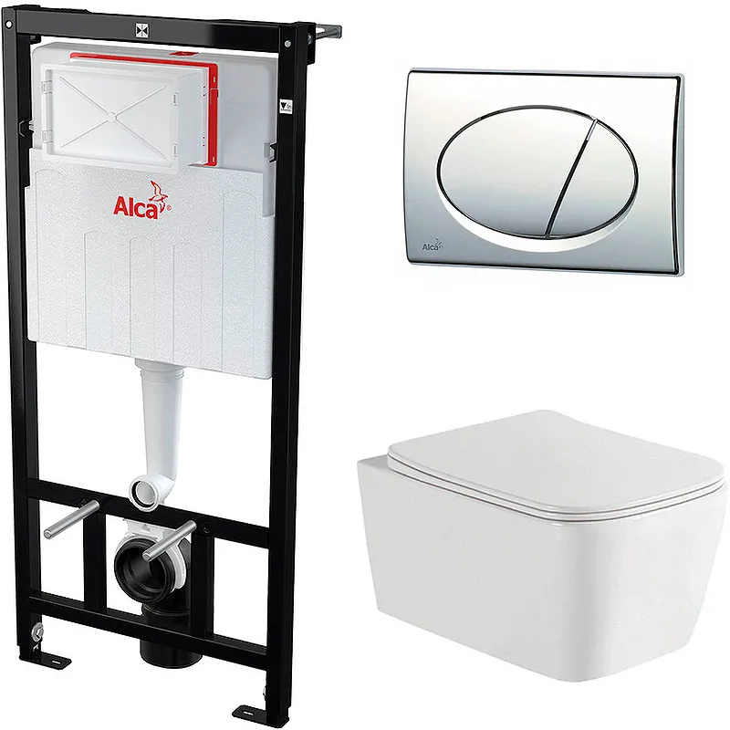 - Инсталляция Alcaplast Sadromodul с бачком, самонесущей рамой и монтажным набором.