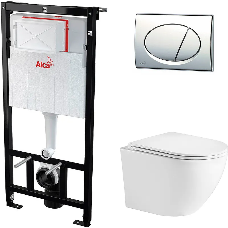 Комплект унитаза WeltWasser Merzbach 043 GL-WT 10000009939 с инсталляцией Alcaplast Sadromodul AM101/1120-3:1 RU M71-0001 с сиденьем Микролифт и клавишей смыва Хром