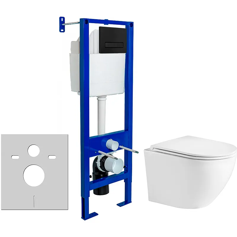 Комплект унитаза WeltWasser Merzbach 043 GL-WT 10000009939 с инсталляцией Berges Atom 410 040340 с сиденьем Микролифт и Черной матовой клавишей смыва