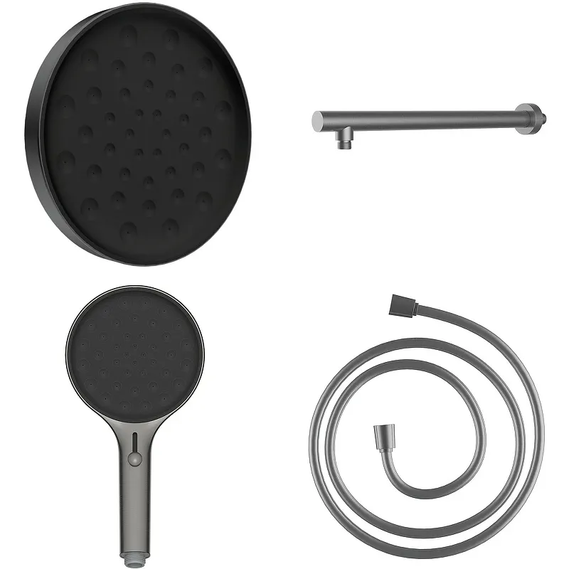 Комплект душа Vincea Inspire VSHH-3I2AHGM — это идеальное решение для современного интерьера ванной комнаты. Изготовленный из высококачественной вороненой стали, он сочетает в себе стиль и функциональность. Надёжный монтаж на стену обеспечивает долговечность и простоту установки.
