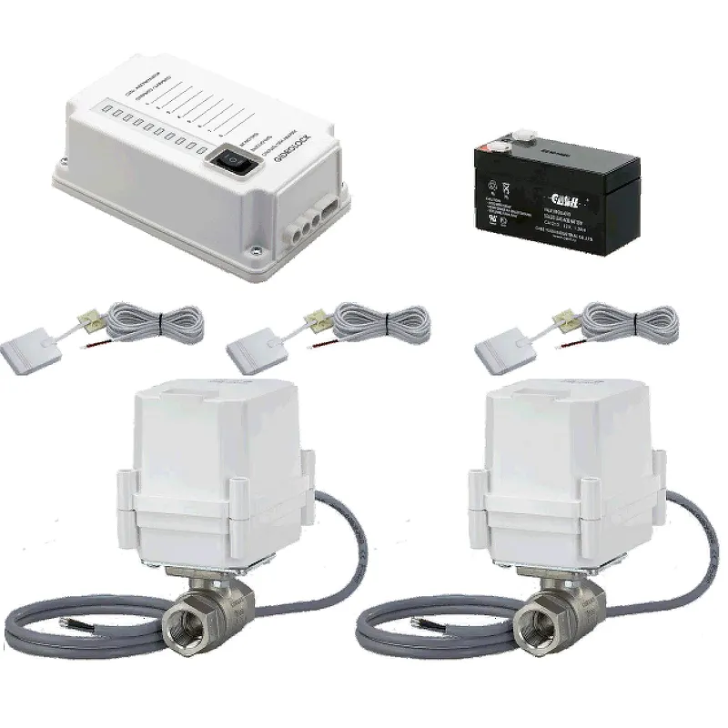 Комплект защиты от протечки воды Gidrоlock Квартира-3 Professional Tiemme 1/2 F3.PR.5.Характеристики: Способ передачи сигнала: проводной. Система оповещения: звуковой сигнал. Выходная мощность: 0,8 кВт. Резервное питание: аккумулятор 12 Вольт 1,3А. Макс. количество установленных датчиков: неограничено. Макс. количество подключаемых электроприводов: 20 шт. Максимальное давление ШЭП: до 40 Атм. Шаровой кран: Tiemme латунь (Италия). Диаметр подключения: 1/2 дюйма. Полное закрытие шарового электропривода: до 30 секунд. Корпус электропривода защищенный герметичный IP65. Максимальная температура ШЭП: до +100 градусов. В комплекте поставки: Блок Управления Gidrоlock Premium (без АКБ) - 1 шт. Датчик протечки воды WSР (3м) - 3 шт. Аккумуляторная батарея 12 Вольт - 1 шт. ШЭП Gidrоlock Professional Tiemme 1/2 - 2 шт. Инструкция. Комплект крепежа.