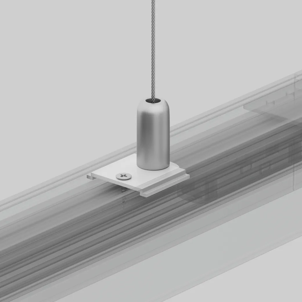 Крепление для троса для накладного магнитного шинопровода. Используется с тросовым подвесом TRA004SW-21S. В
