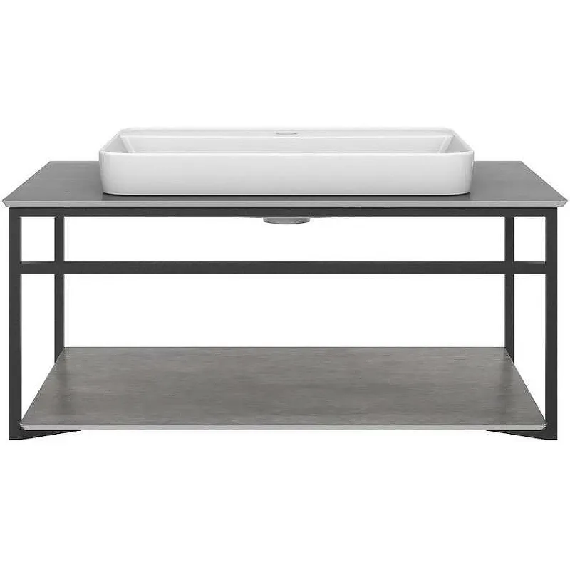 Консоль под раковину Kerama Marazzi Plaza Next 80 PL.N.80.02\BLK.M подвесная.Характеристики: Цвет: черный матовый. Материал: сталь. Покрытие: порошковая эмаль. Размеры (ШхВхГ): 776х330х466 мм. Система хранения: открытая полка. Оснащение: полотенцедержатель. Монтаж: подвесной. В комплекте поставки: Консоль под раковину (металлический каркас).