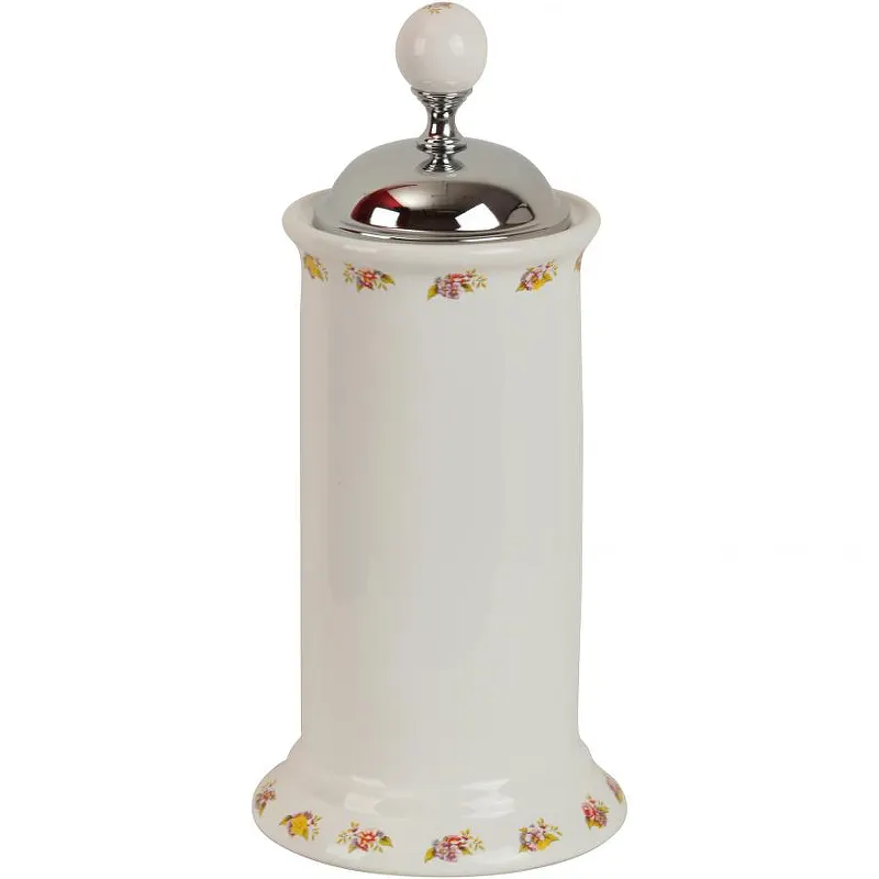 Контейнер для хранения Migliore Provance 17662.Контейнер для хранения Migliore стойко выдержит постоянное воздействие влаги, подчеркнув общий вид санузла.Характеристики: Цвет: хром, белый. Материал: латунь, керамика. Размеры (ШхВхД): 118х270х118 мм. С крышкой. Монтаж: настольный. В комплекте поставки: Контейнер для хранения.