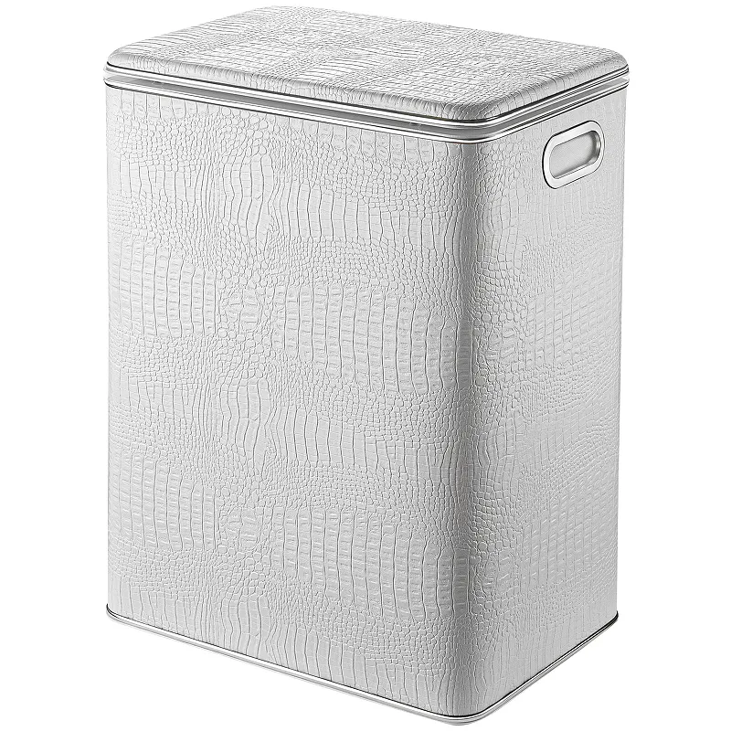 Корзина для белья Geralis KWH-S Croco большая.Характеристики: Цвет: белый. Кант: хром. Материал: экокожа, ABS-пластик. Габариты (ШхВхД): 450х600х300 мм. Объем: 81 л. Плавное закрывание крышки. Ручки для переноски. Выдерживает вес до 100 кг. Монтаж: напольный.