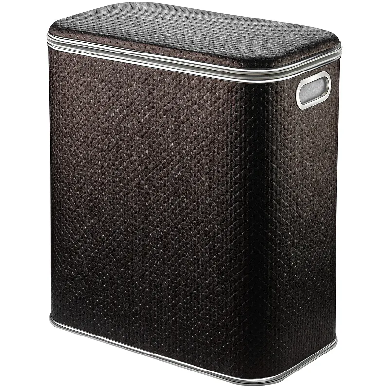 Корзина для белья Geralis PCH-M Punto.Характеристики: Цвет: шоколад. Кант: хром. Материал: экокожа, ABS-пластик. Габариты (ШхВхД): 450х500х250 мм. Объем: 50 л. Плавное закрывание крышки. Ручки для переноски. Выдерживает вес до 100 кг. Монтаж: напольный.