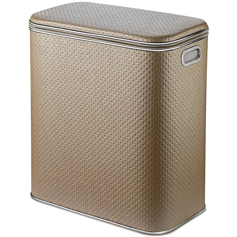 Корзина для белья Geralis PLH-M Punto.Характеристики: Цвет: бежевый. Кант: хром. Материал: экокожа, ABS-пластик. Габариты (ШхВхД): 450х500х250 мм. Объем: 50 л. Плавное закрывание крышки. Ручки для переноски. Выдерживает вес до 100 кг. Монтаж: напольный.