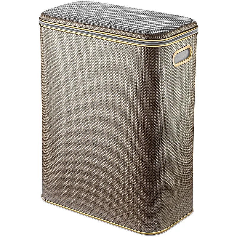 Корзина для белья Geralis RBG-B Ромб стандартная.Характеристики: Цвет: бежевый темный. Кант: золото. Материал: экокожа, ABS-пластик. Габариты (ШхВхД): 450х600х250 мм. Объем: 67 л. Плавное закрывание крышки. Ручки для переноски. Выдерживает вес до 100 кг. Монтаж: напольный.