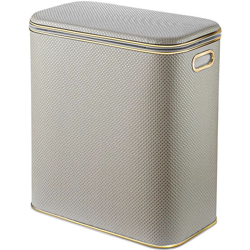 Корзина для белья Geralis RWG-M Ромб.Характеристики: Цвет: белый. Кант: золото. Материал: экокожа, ABS-пластик. Габариты (ШхВхД): 450х500х250 мм. Объем: 50 л. Плавное закрывание крышки. Ручки для переноски. Выдерживает вес до 100 кг. Монтаж: напольный.