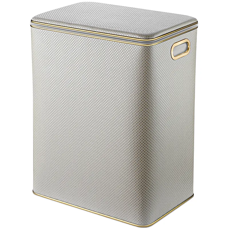 Корзина для белья Geralis RWG-S Ромб большая.Характеристики: Цвет: белый. Кант: золото. Материал: экокожа, ABS-пластик. Габариты (ШхВхД): 450х600х300 мм. Объем: 81 л. Плавное закрывание крышки. Ручки для переноски. Выдерживает вес до 100 кг. Монтаж: напольный.