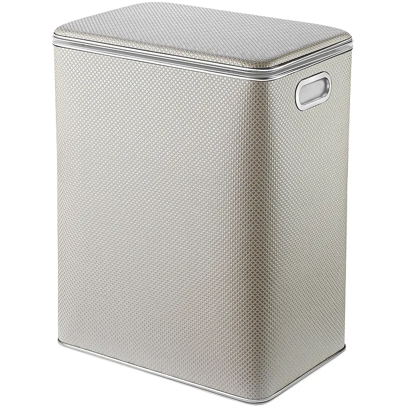 Корзина для белья Geralis RWH-S Ромб большая.Характеристики: Цвет: белый. Кант: хром. Материал: экокожа, ABS-пластик. Габариты (ШхВхД): 450х600х300 мм. Объем: 81 л. Плавное закрывание крышки. Ручки для переноски. Выдерживает вес до 100 кг. Монтаж: напольный.