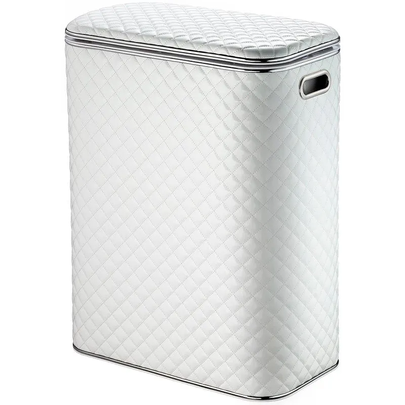 Корзина для белья Geralis SWH-B Ромб стежка Белая, кант Хром, стандартная