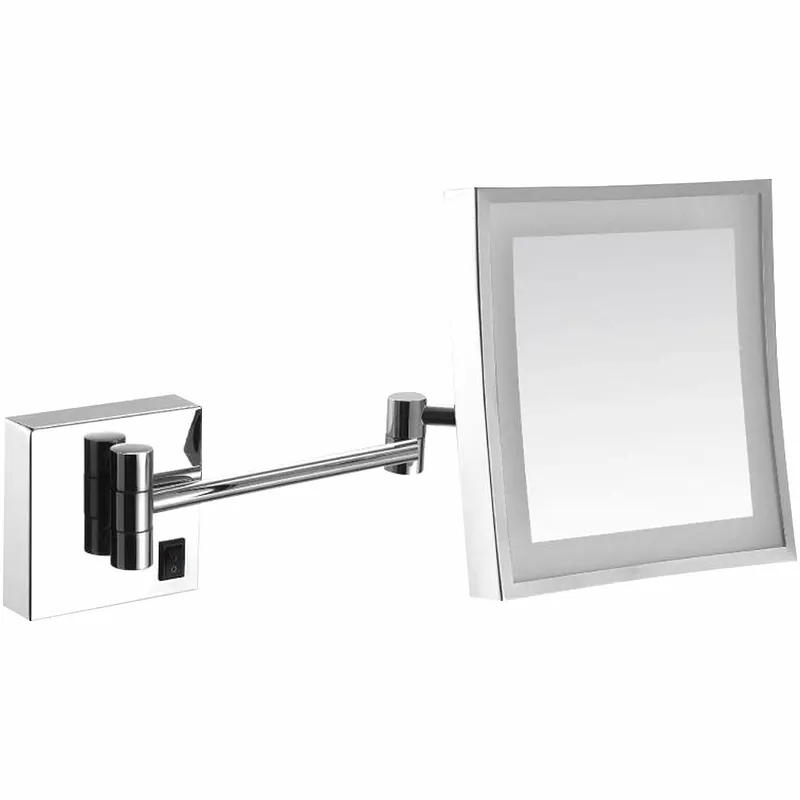 Подвесное косметическое зеркало Nofer 08003.B.Характеристики: Материал: латунь, нержавеющая сталь, стекло. Цвет: глянцевая нержавеющая сталь. Форма: квадратная. Размер (ШхВхД): 23х23х40 градусовм. Монтаж: подвесной. С подсветкой желтого цвета. С 3-х кратным увеличением. Выдвижное. В комплекте поставки: косметическое зеркало.