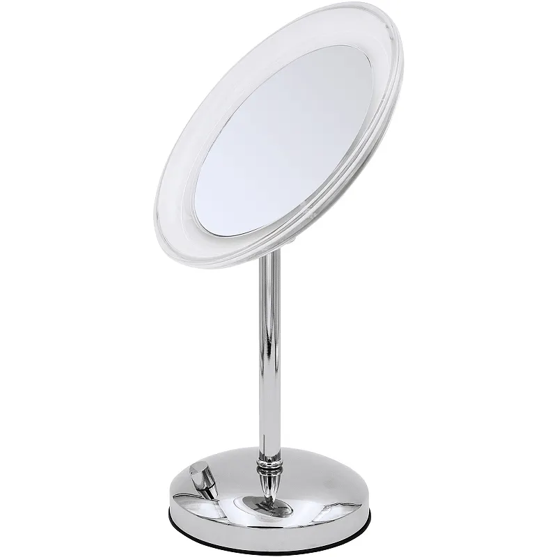 Косметическое зеркало Ridder Tiana О3205100.Характеристики: Цвет: хром. Материал: металл. С 5-ти кратным увеличением. Светодиодная подсветка. Настройка яркости подсветки. Габаритные размеры (ШхВхД): 230х395х153 мм. Монтаж: настольный. В комплекте поставки: Косметическое зеркало. Инструкция.